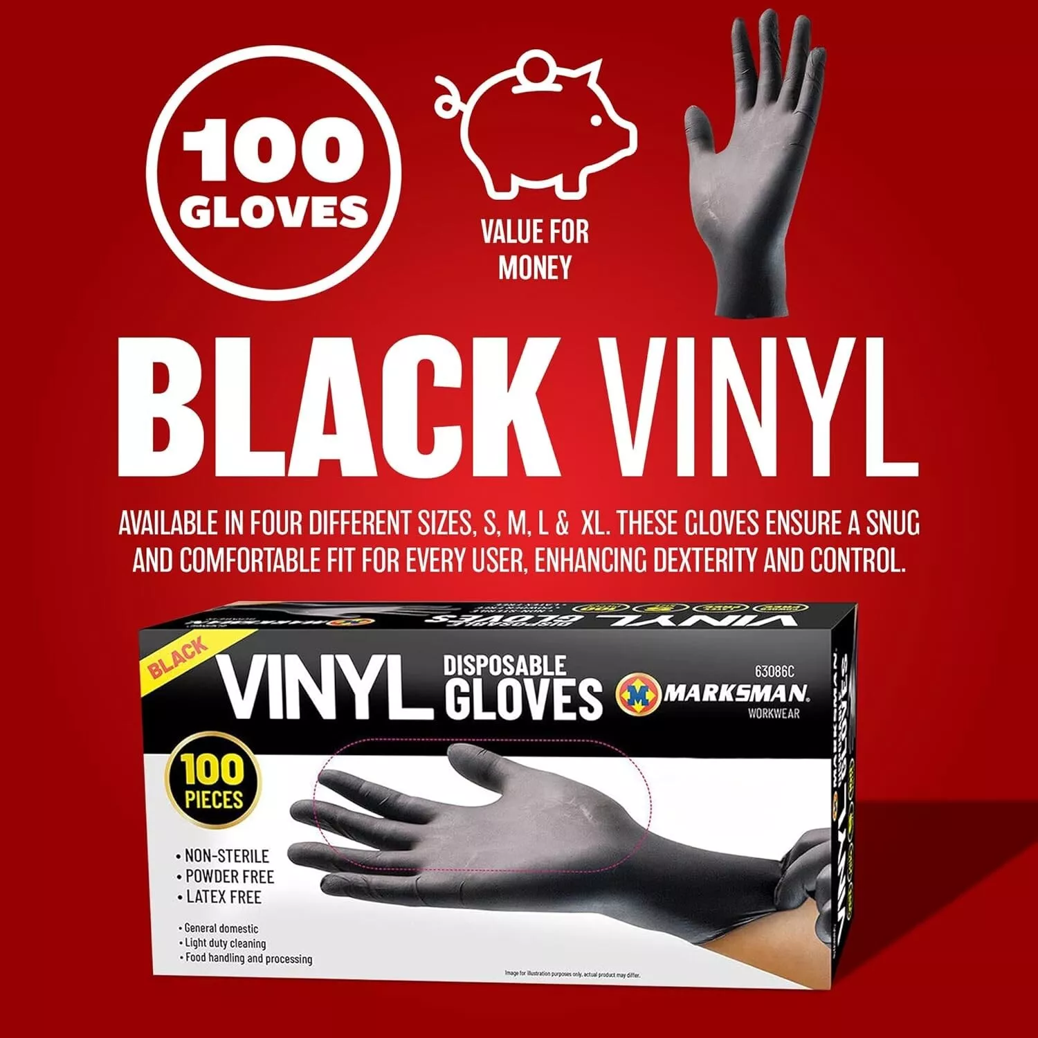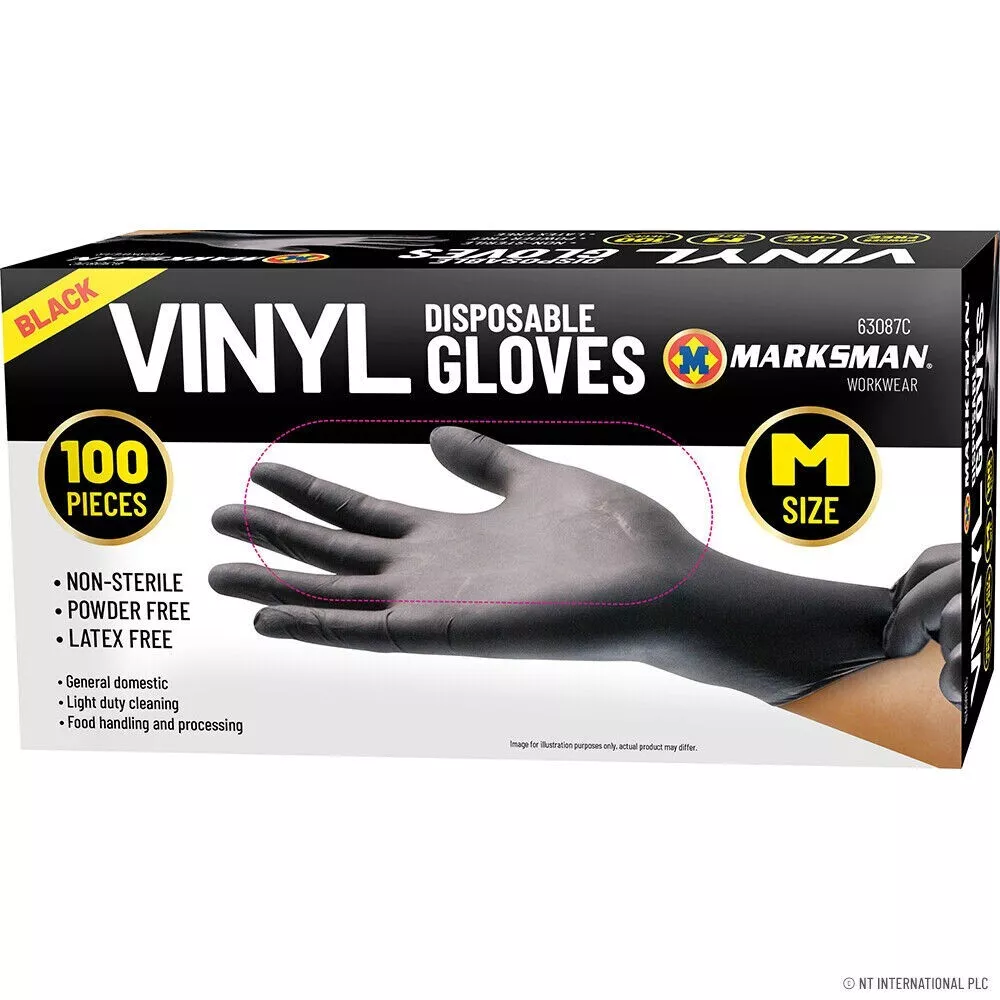 100PC MEDIUM DISPOSABLE VINYL GLOVES BLACK POWDER/LATEX FREE WORK HYGIENE FOOD