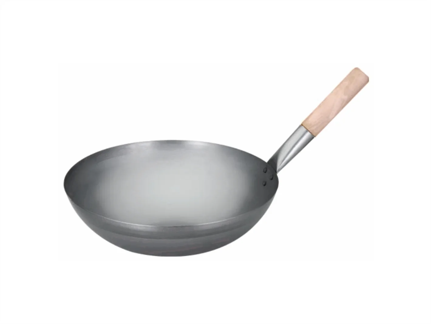 Carbon steel is the material traditionally used for making woks because it can withstand very high temperatures and diffuses heat quickly and evenly. Perfect for stir-frying the ingredients at high temperatures while preserving the flavour, colour and texture, and retaining the crispness of the vegetables.