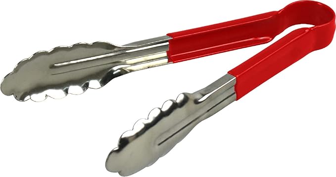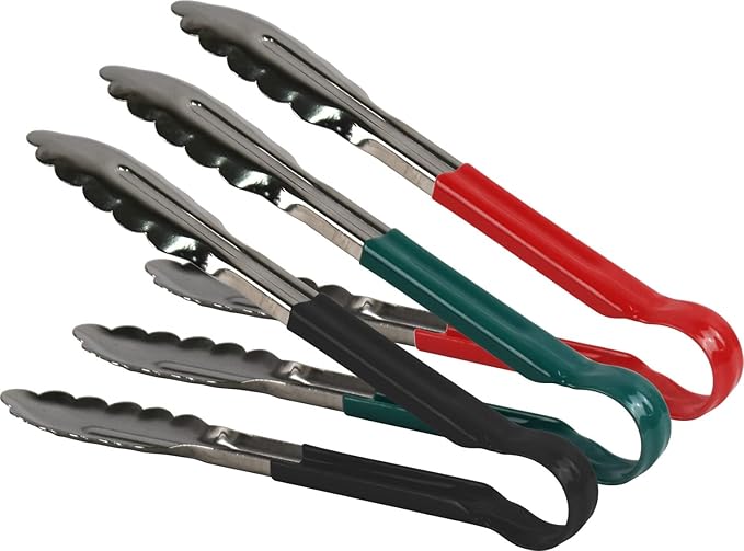 3pc Professional 9″ (23cm) Stainless Steel Food Tongs Set (Red Green Black)