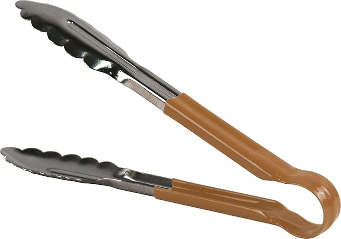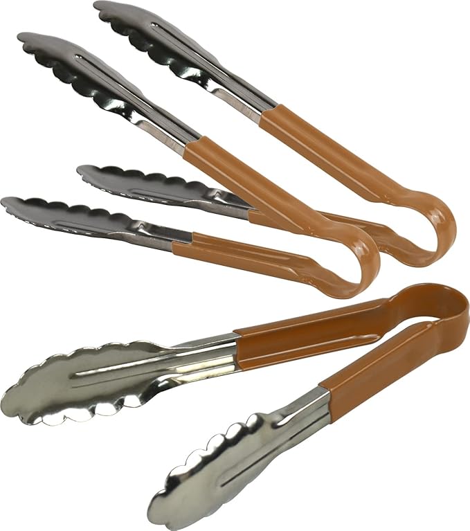 3X Professional Stainless Steel Cooking Tongs Set (9″, Brown)