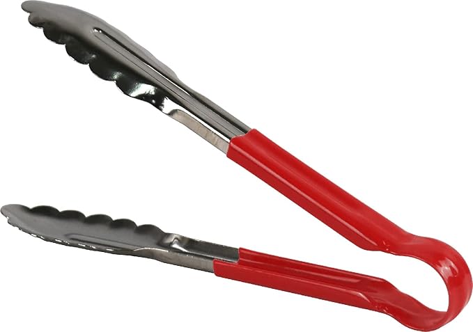 3X Professional Stainless Steel Cooking Tongs Set (9″, Red)