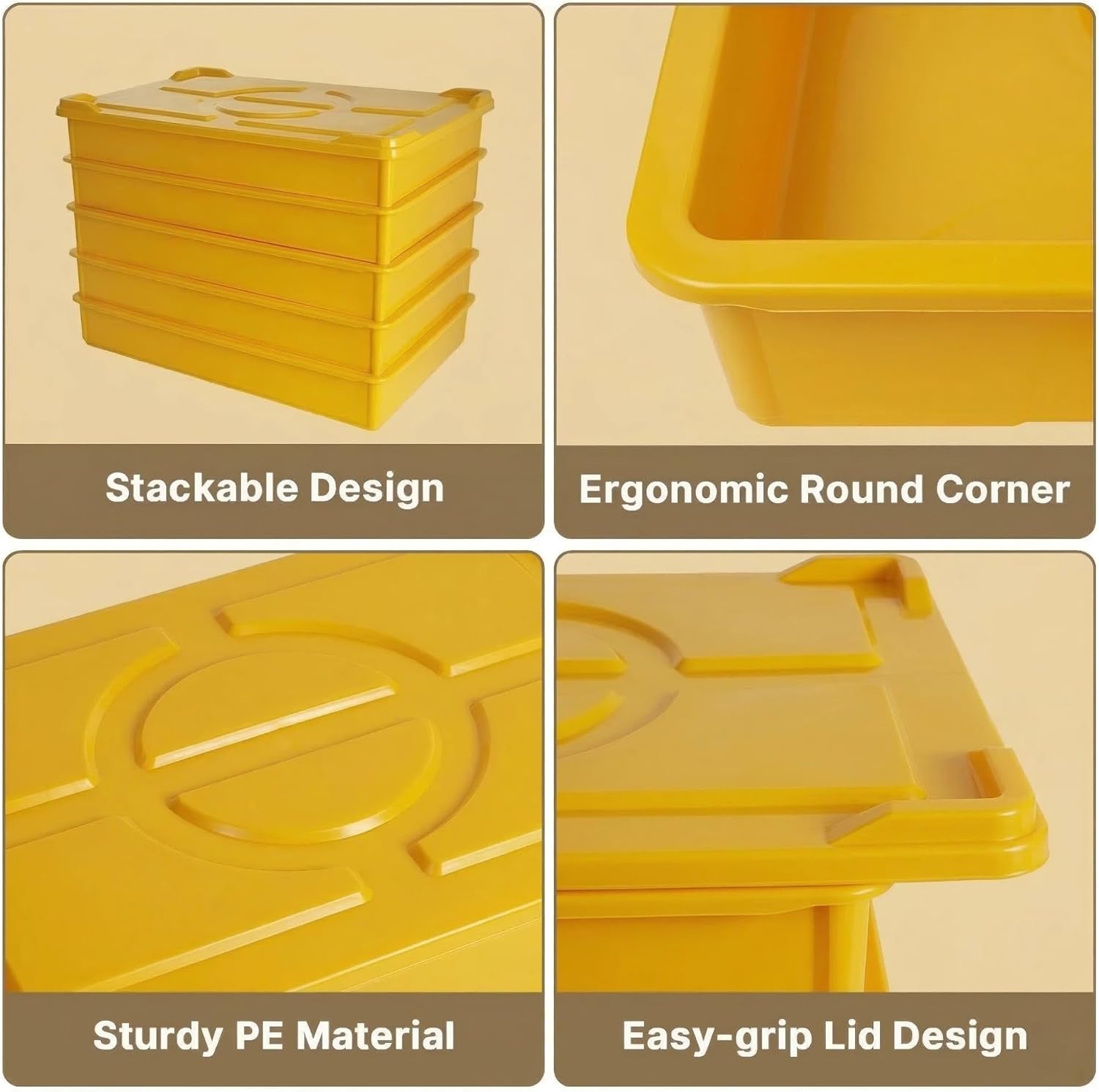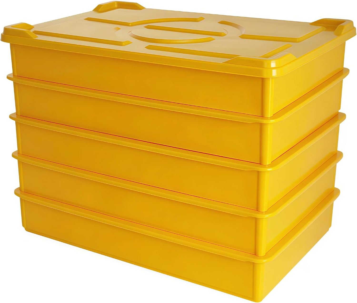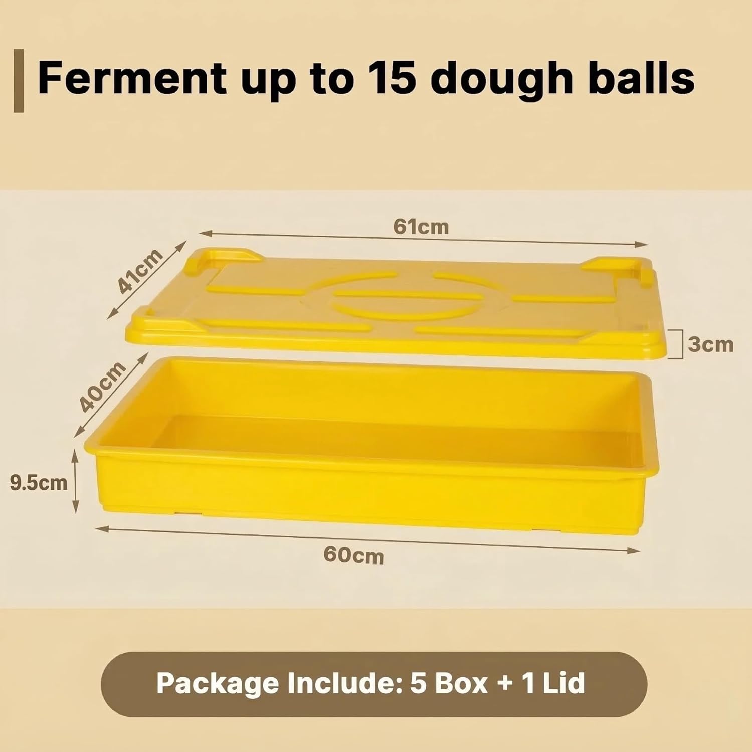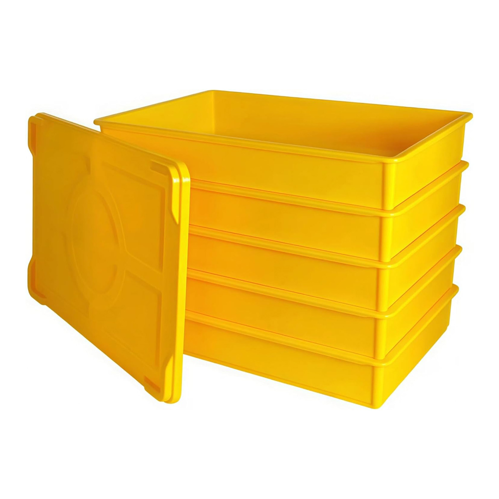 - Upgrade your kitchen setup with our premium yellow set, including 5 pack pizza proofing boxes and 1 matching lid. Each tray measures 60cm L x 40cm W x 9.5cm H. Crafted from durable, food-grade plastic, it ensures safe and hygienic food preparation for both commercial pizzerias and home kitchens.