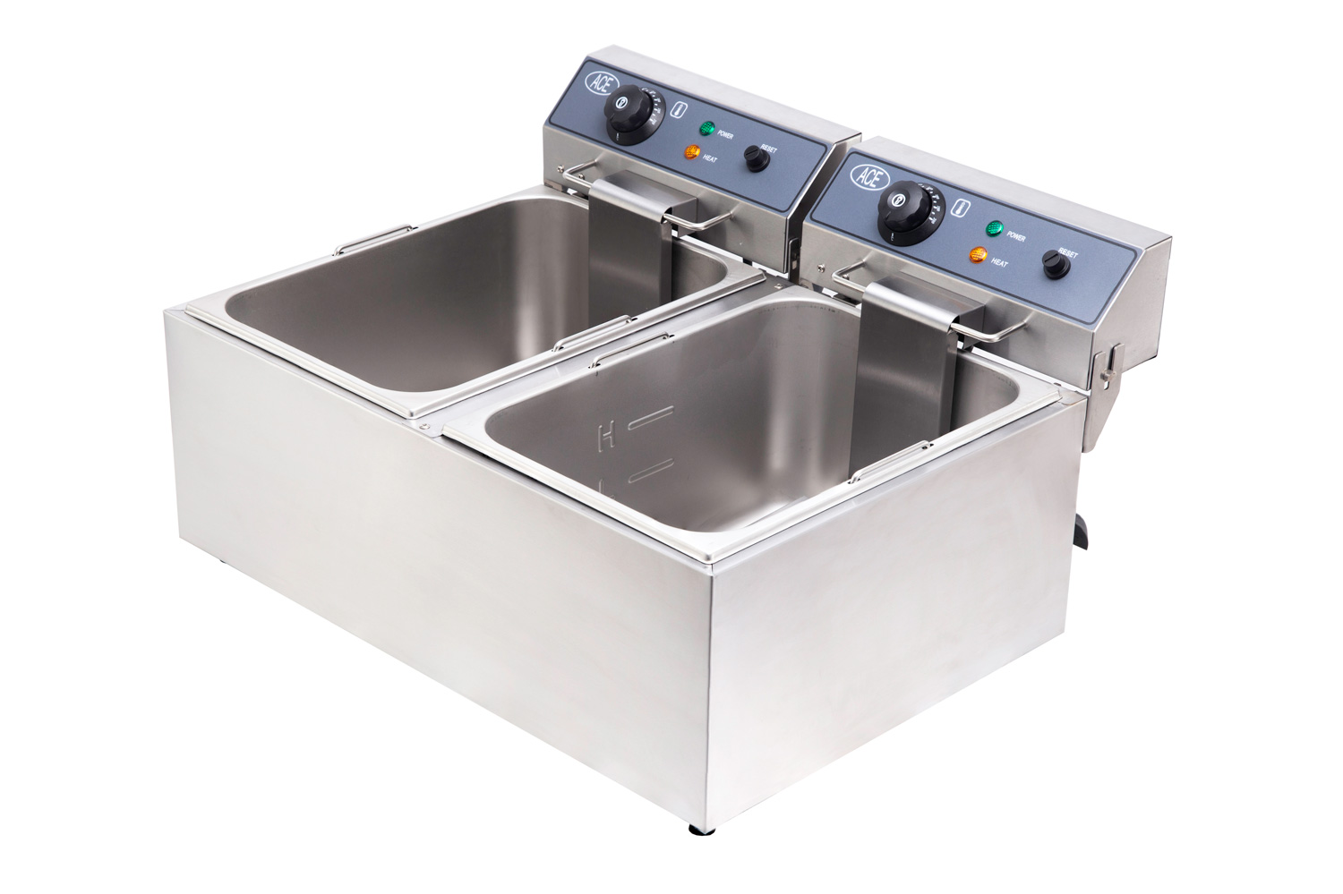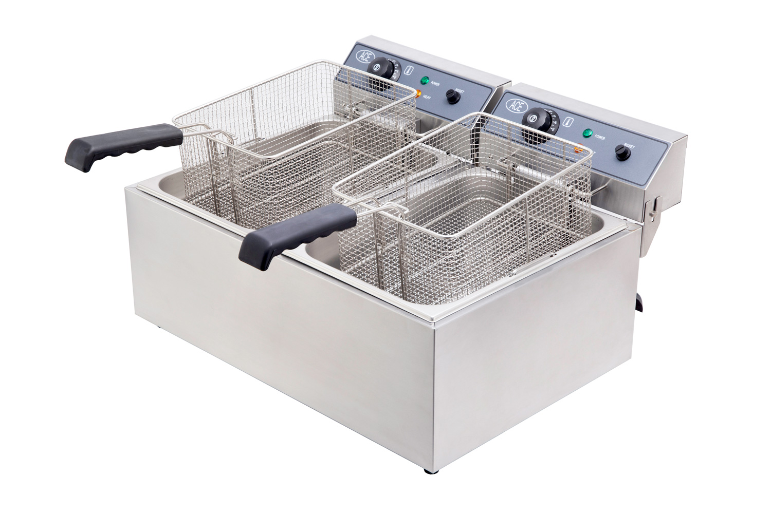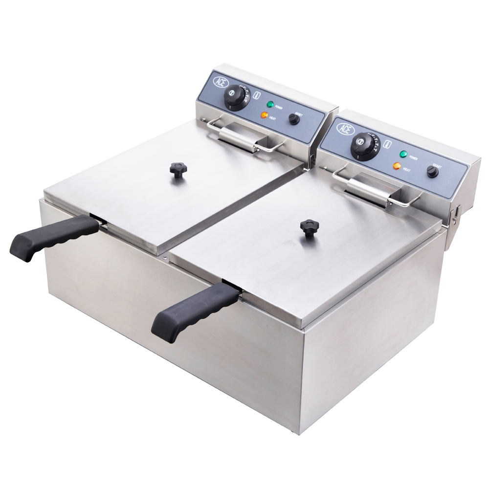 This Ace Double 17 litre electric table top fryer has two large basket so you can cook more than one products at once, it is also has ample space for frying fish.