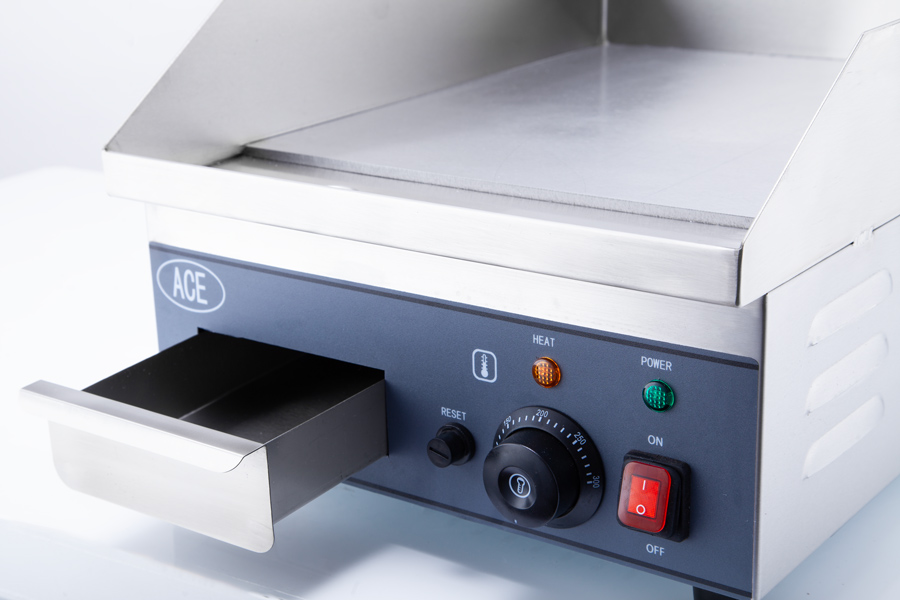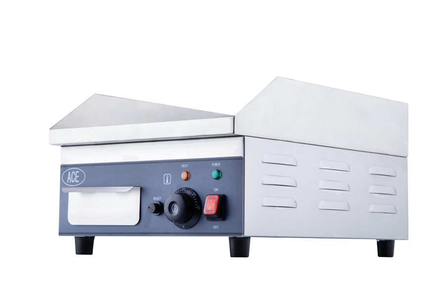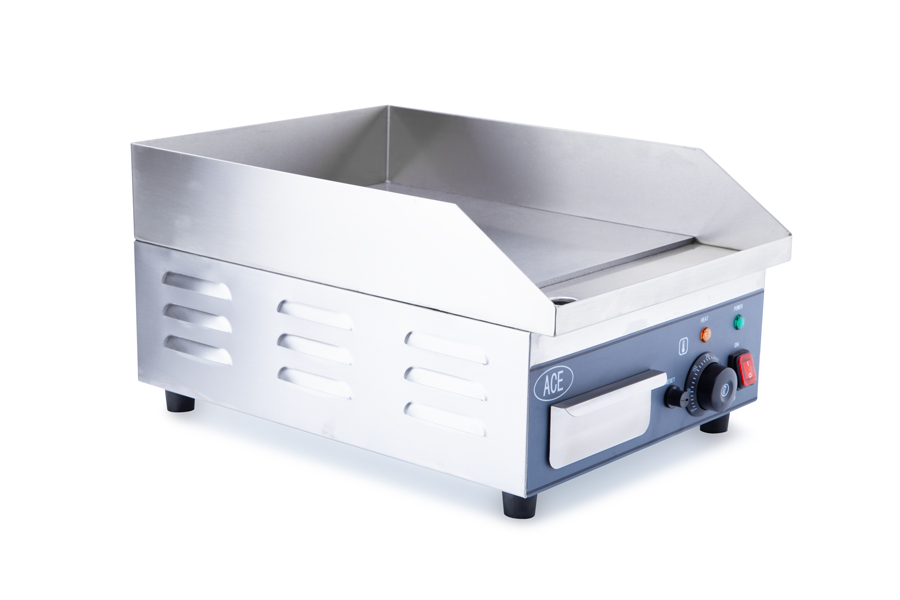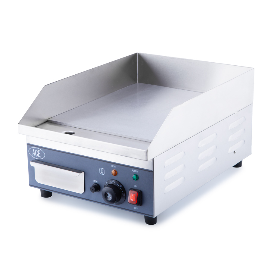 Cook up a storm with this ACE 35cm Electric Griddle. Perfect for commercial kitchens and food service businesses, this unit features a thermostatic control for precise temperature settings. The cooking surface is made of durable stainless steel, making it easy to clean and maintain. This electric griddle is powered by electricity and boasts a unit quantity of one. The brand is ACE and the unit type is a unit. Ideal for cooking up a variety of dishes, this electric griddle is a must-have for any commercial kitchen. It is perfect for use in restaurants, catering events, and food trucks. Purchase now and start cooking up a storm!