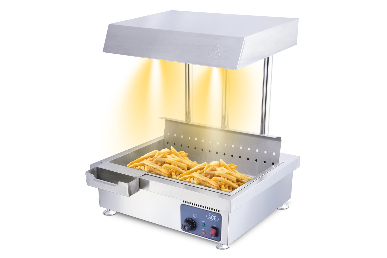 Keep chips and other fried foods crisp and tasty with the powerful and reliable Ace chip scuttle. Constructed with hygienic and easy to clean stainless steel, the chip dump is incredibly durable and built for busy commercial applications, such as restaurants, takeaways and canteens. The adjustable heat thermostat allows precise temperature control, ensuring food is reliably stored at the correct temperature for service.