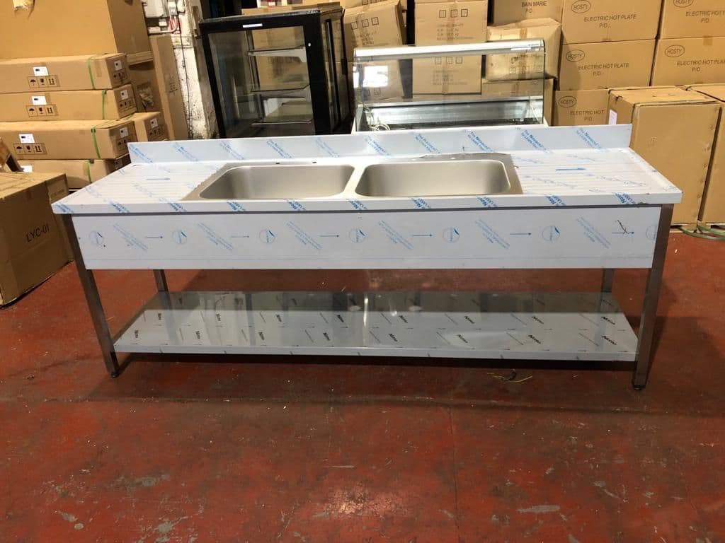 Featuring two sinks and two drainers, this commercial grade sink is perfectly designed for use in commercial kitchens. Made from fully welded 304 stainless steel for maximum strength and durability, this sink unit can withstand daily use in the busiest of kitchens and pot wash areas. A 60mm upstand at the rear of the sink unit prevents water and food from splashing against your walls and down onto the floor, helping you to maintain maximum hygiene with ease. Delivered flat-packed for self assembly.