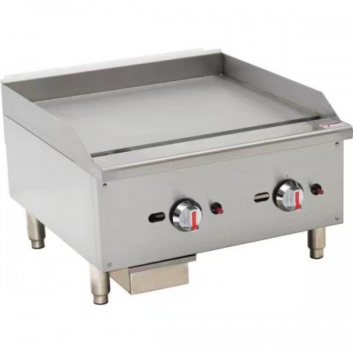 his Gas Countertop Griddle is made from thick machined steel plate which ensures even heat distribution with excellent heat retention.