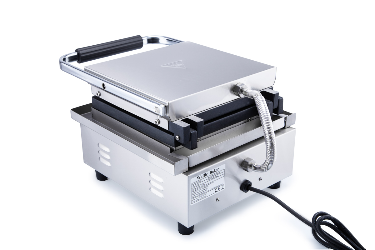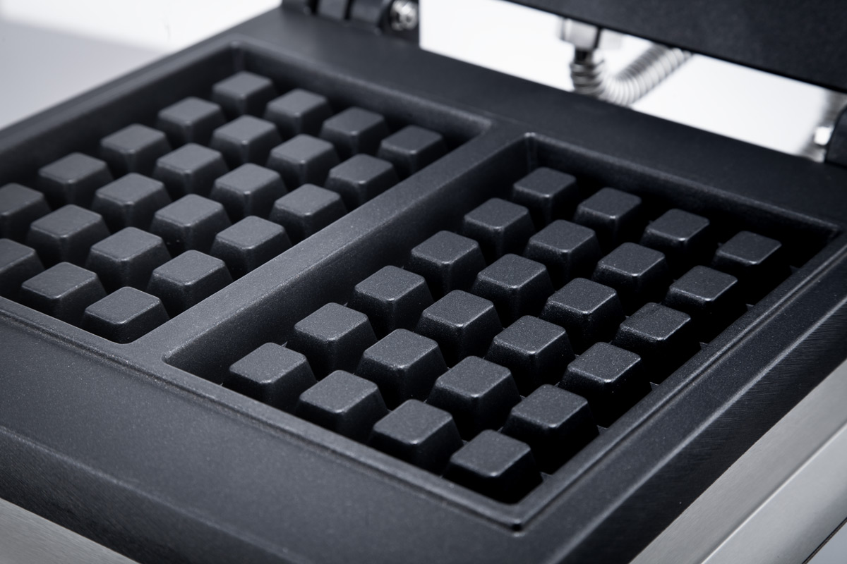 This waffle maker is suitable for use in ice cream parlours, mobile catering outlets and convenience shops, the waffle maker can easily produce up to 30 crisp waffles every hour. The non-stick plates ensure great quality waffles, whilst the adjustable timer helps to prevent waste. An easy to clean unit thanks to its removable drip tray and stainless steel construction.