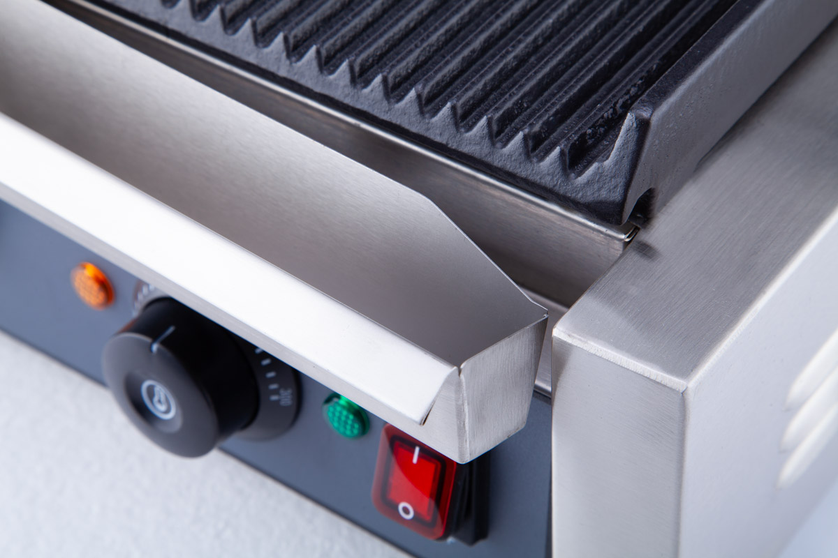 The Ace Double Panini Grill with top and bottom ribbed cast iron plates for long-term use and healthier grilling and is ideal for cooking burgers, steaks, paninis and toasted sandwiches in busy establishments. With an adjustable swivel head and a variable heat knob for different thicknesses and temperatures, you have complete control over the entire grilling process. It is also supplied with a removable grease tray and griddle scraper for easier cleaning.