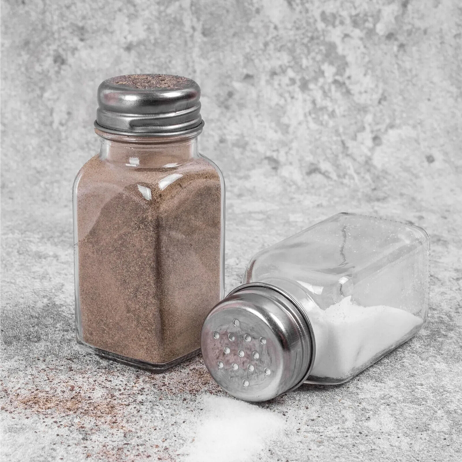 Glass Salt & Pepper Shaker Pots Set Of 2 Glass Herb Seasoning Spice Jars 9x4cm