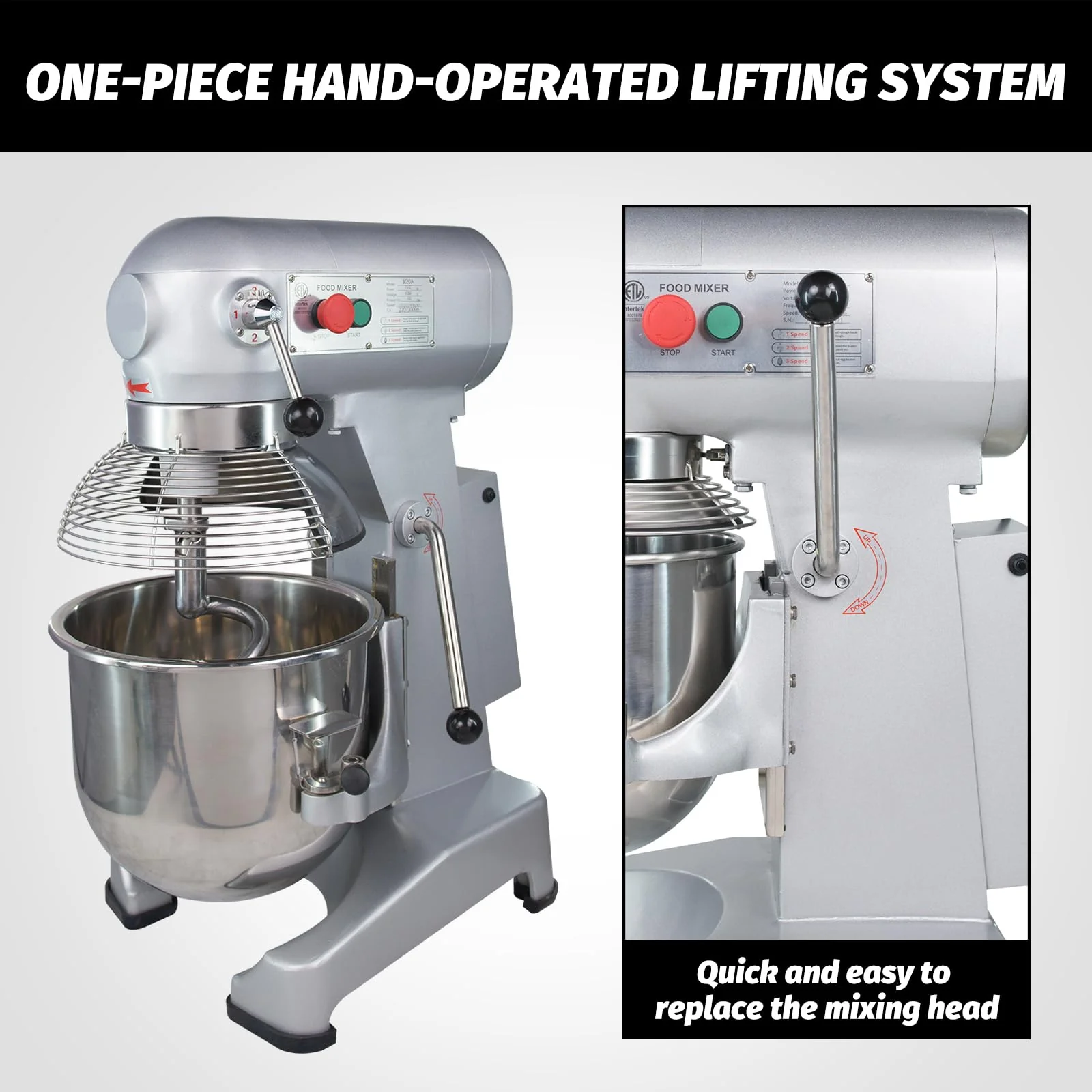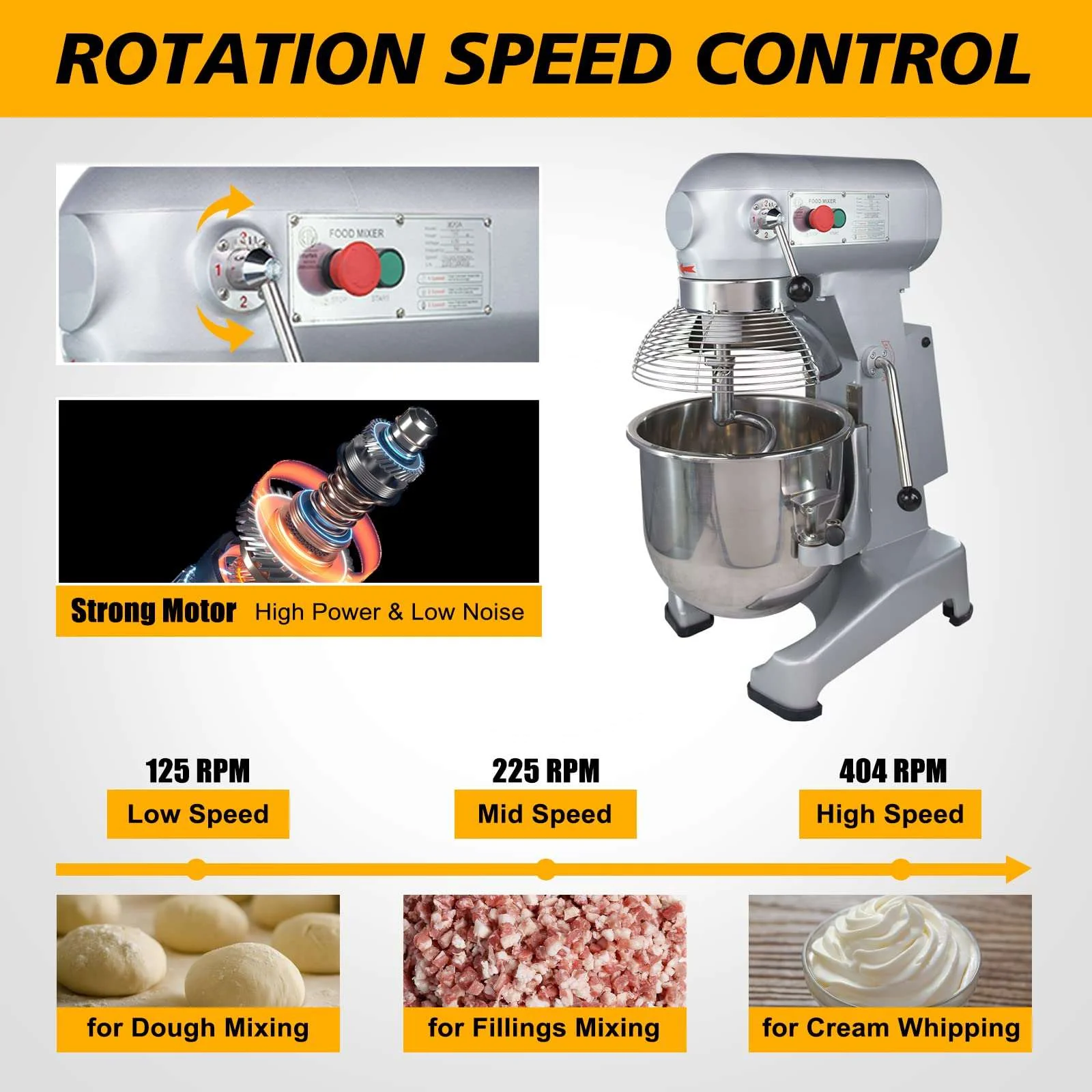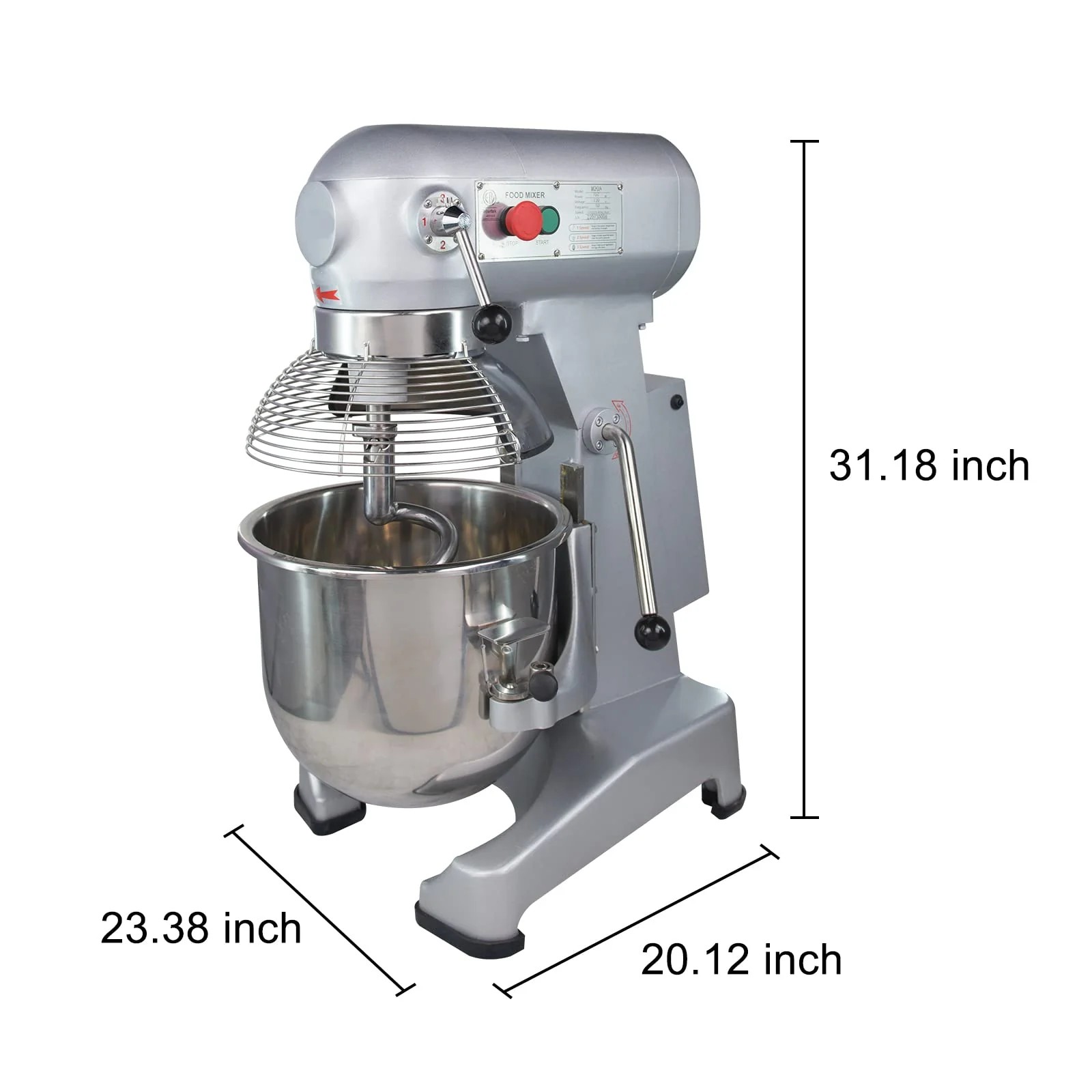 - Food Grade Stailess Steel: This mixer made of food-grade stainless steel. The 20Qt capacity bowl is large enough for meeting your various commercial needs.