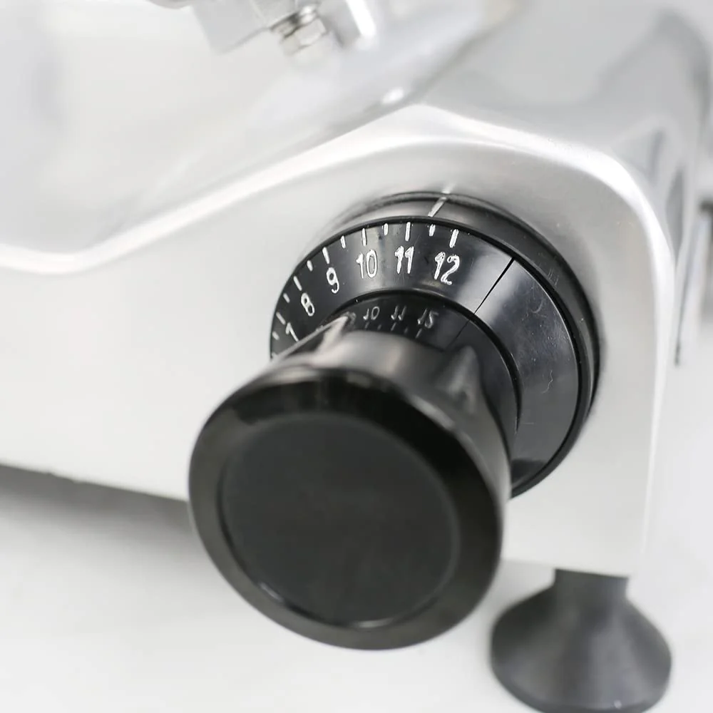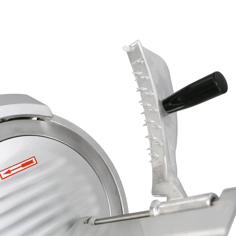 This semi-automatic slicer has a stainless steel blade and tray along with an aluminum body for lasting use, as it will resist corrosion and other rigors associated with commercial environments. With its 1/5 hp design, this slicer is perfect for the occasional slicing of fresh ingredients in the kitchen for sandwiches, pizzas, appetizers, or other specialty menu items. Thanks to its 10″ adjustable blade, this model can cut between 1/16″ to 5/8″ thick slices depending on your usage needs. This slicer comes with a built-in blade sharpener for further convenience, so you can keep it sharp and continue using it optimally. The included fixed ring guard also prevents unintentional contact with the blade so that you can prevent injuries and keep your staff safe.
