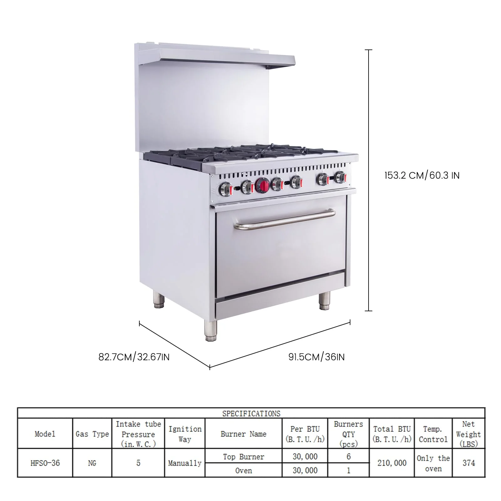 - Burner Power(BTU): 30,000X6