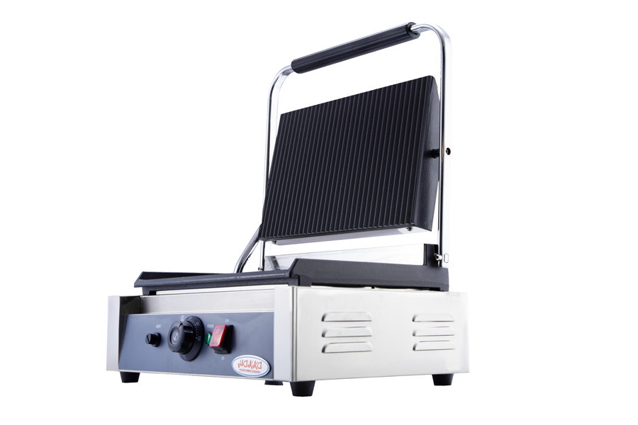 Designed in UK and produced to a high quality finish, this superb single Panini contact grill will give you great performance and reliability. This large single model offers a cooking plate that is 50% wider than the standard single model. Please do not confuse this high quality contact grill with cheaper models as this is a heavy duty robust build unit designed for everyday use by professional caterers.