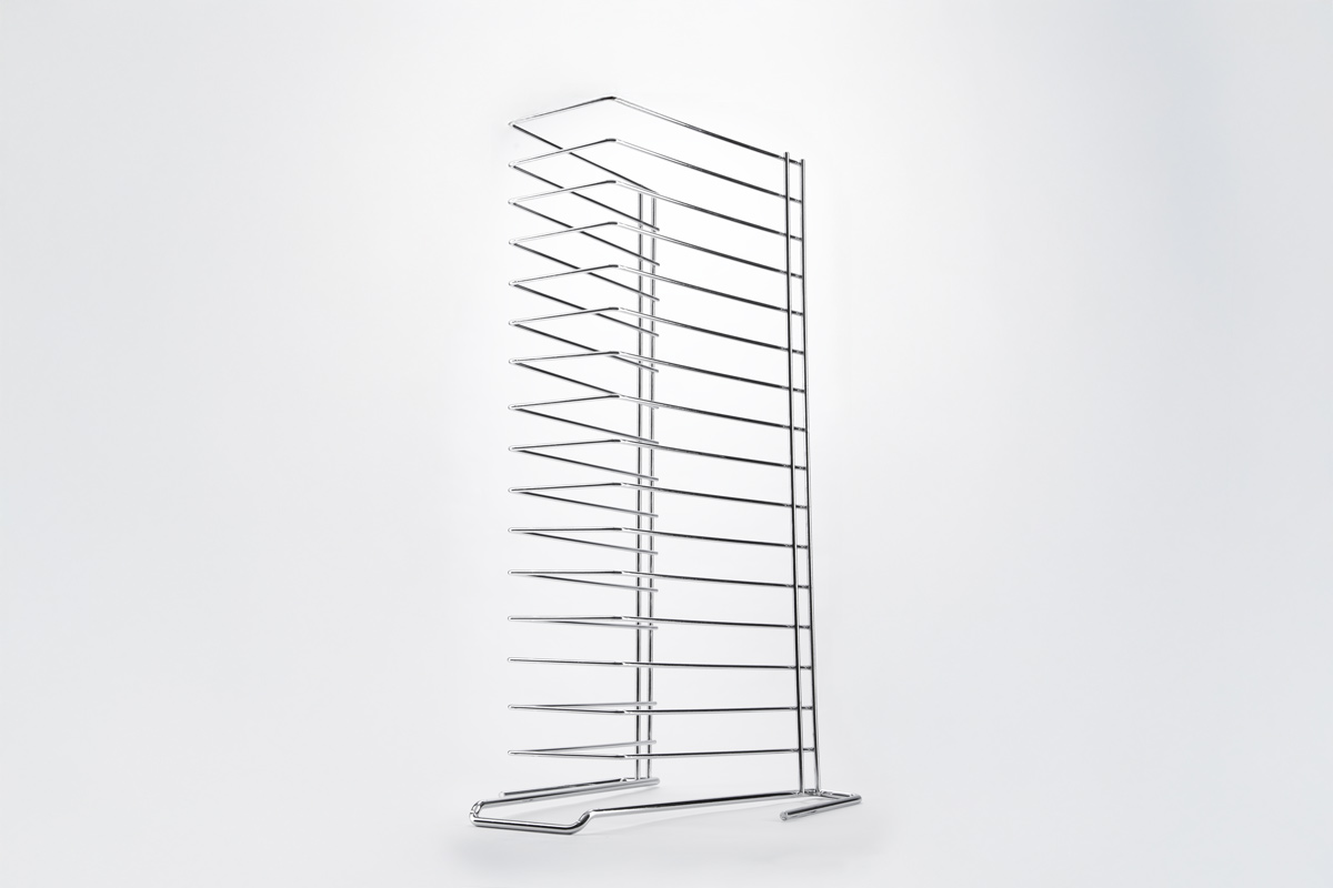 Organise your pizza pans, trays, and screens with this heavy-duty 15-slot pizza pan stacking rack. Perfect for busy pizzerias, restaurants, and catering kitchens, this rack keeps your pans and cooked pizzas neat, accessible, and ready to serve.