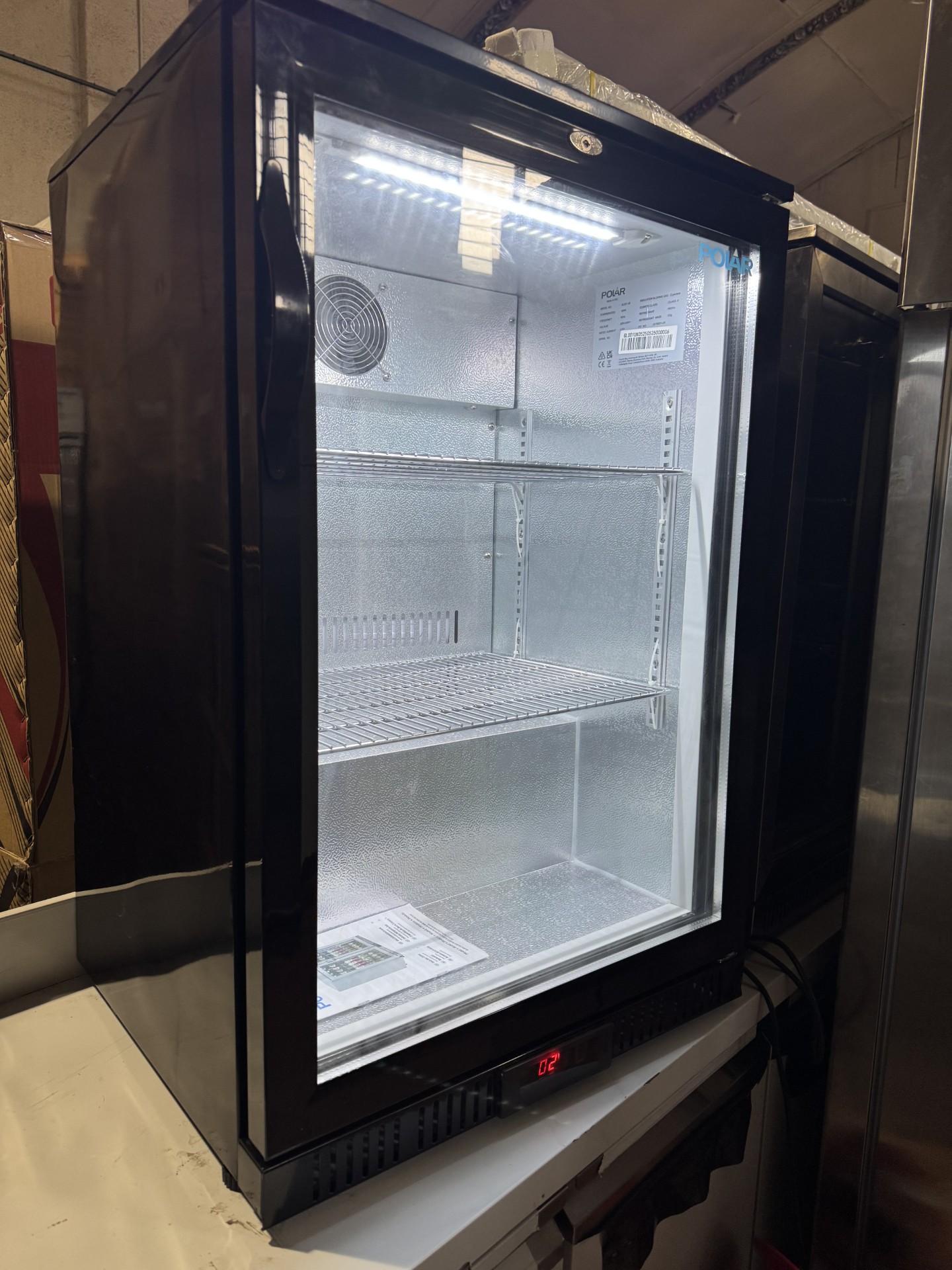 Capacity 108 x 330ml bottles Dimensions – insulation 40mm Material Painted Steel Power Type 180W. 1.3A Refrigerant R600a Temperature Range 2°C to 8°C Energy Rating D Colour Black Five Year Electricity Cost £330.49 – Based on £0.13 per unit. 2 sturdy adjustable shelves maximise capacity Time-saving easy-clean construction Accurate, user-friendly digital temperature controls and display Secure double glazed lockable door Sturdy feet allow easy positioning Automatic defrost maximises efficiency and performance Fan assisted cooling for rapid temperature recovery Energy efficient internal LED lighting Ambient temperature range: 5°C to 38°CHELP.