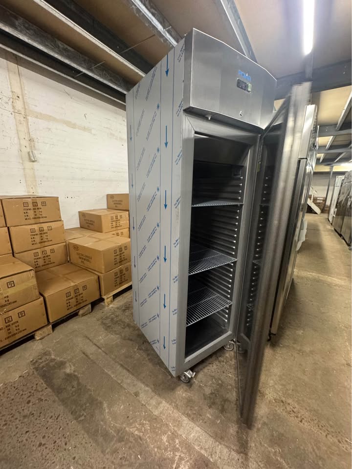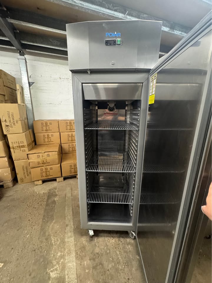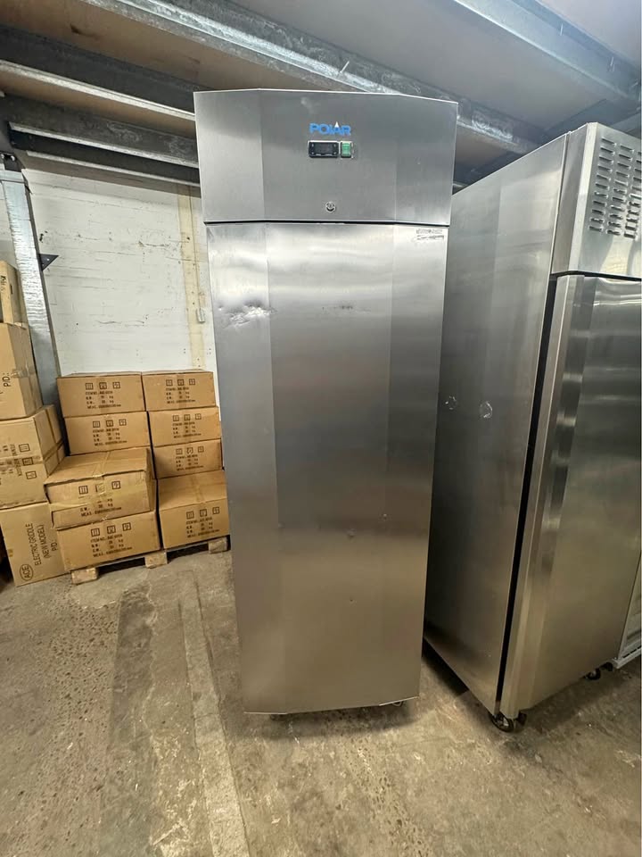 Reliable Polar upright commercial fridge in full working order. Ideal for restaurants, cafés, takeaways or catering kitchens. • Stainless steel finish • Digital temperature control • Large internal storage capacity • Clean and ready to use • Some cosmetic dents to the door (does not affect performance)
