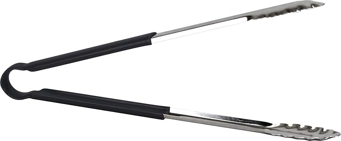 Professional Stainless Steel Food Tongs with Coloured Non Slip Handles (Black, 12″)