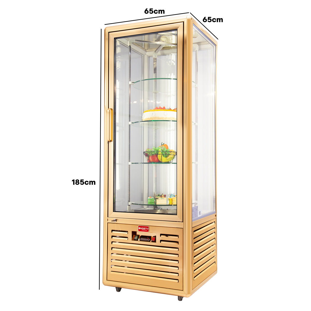 Vertical Rotating Patisserie Display Fridge / Vertical Cake Showcase Gold