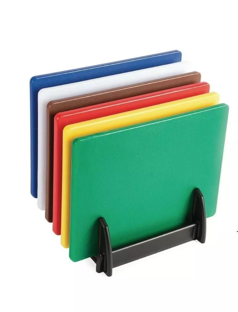 Set of 6 Professional Catering Colour Coded Chopping Boards with Rack