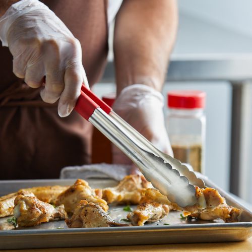 Both versatile and economical, utility tongs will often be some of the most utilized items in a professional kitchen. They can be used in both the front and the back of the house for anything from grabbing pieces of food from the buffet or flipping meat on the grill. Featuring a one-piece stainless steel design with plastic-coated handles for an easy grip, this pair of tongs will be your new favourite utensil.