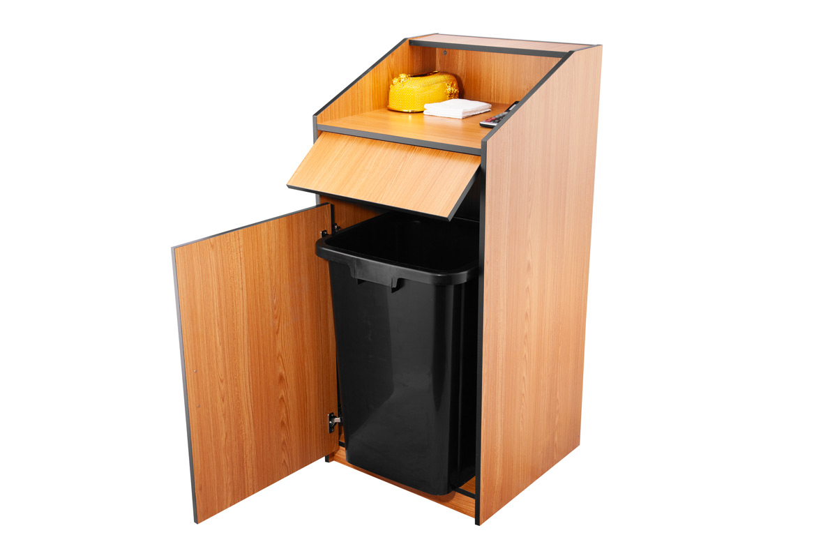Enhance the hygiene and aesthetics of your restaurant with this 100-litre waste bin, designed for high-traffic environments. Made from durable chipboard, it offers a spacious yet compact waste disposal solution. With dimensions of 120x55x55 cm, it fits seamlessly into kitchens, dining areas, or service stations without taking up excessive space.